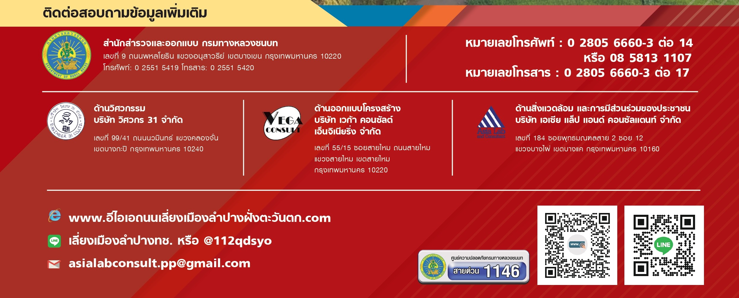 โครงการจ้างวิศวกรที่ปรึกษาสำรวจและออกแบบปรับปรุงและแก้ไขปัญหาการจราจร บนทางหลวงหมายเลข 2 สาย อุดรธานี - หนองคาย ตอน อ.สระใคร - อ.หนองสองห้อง