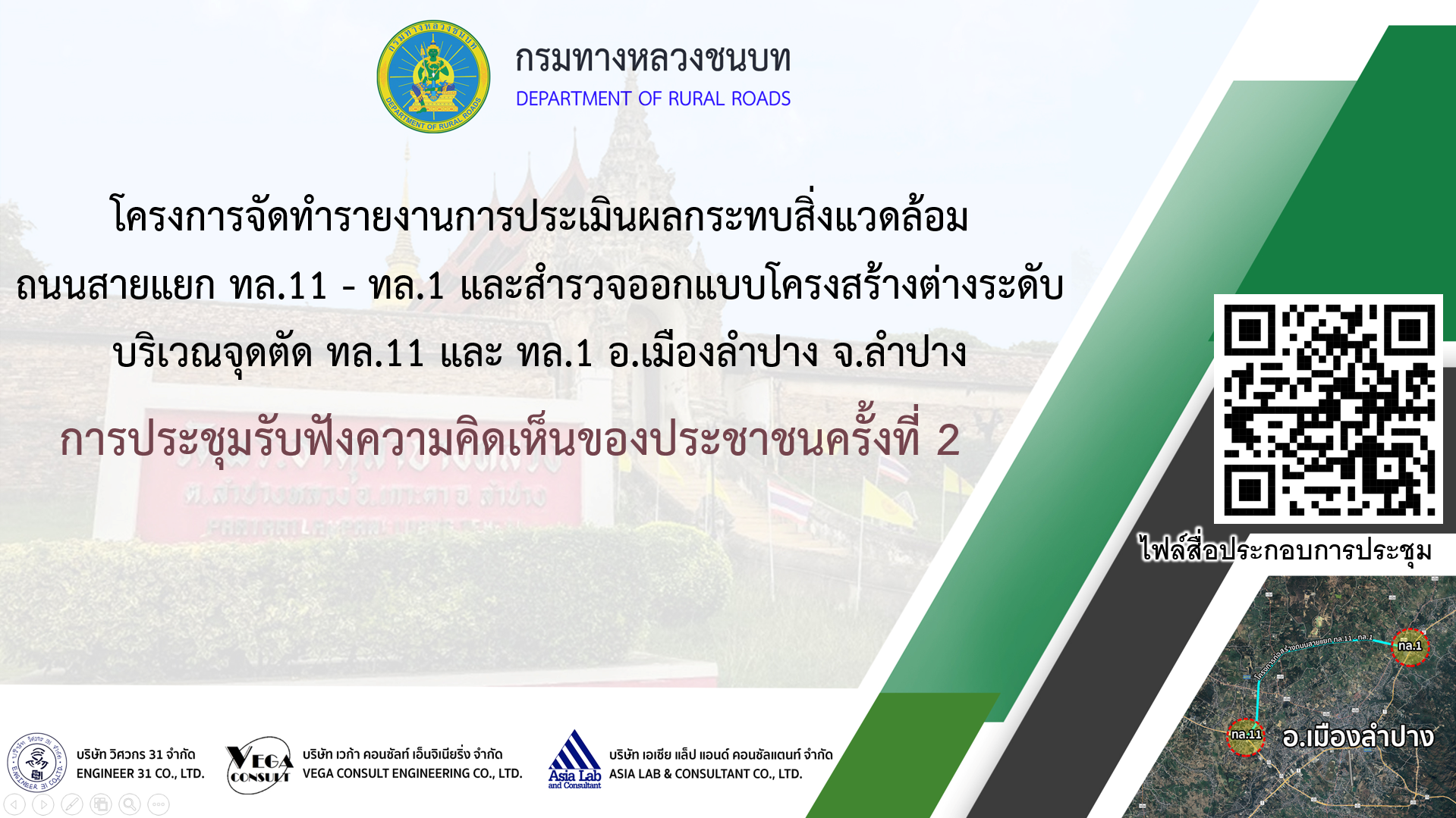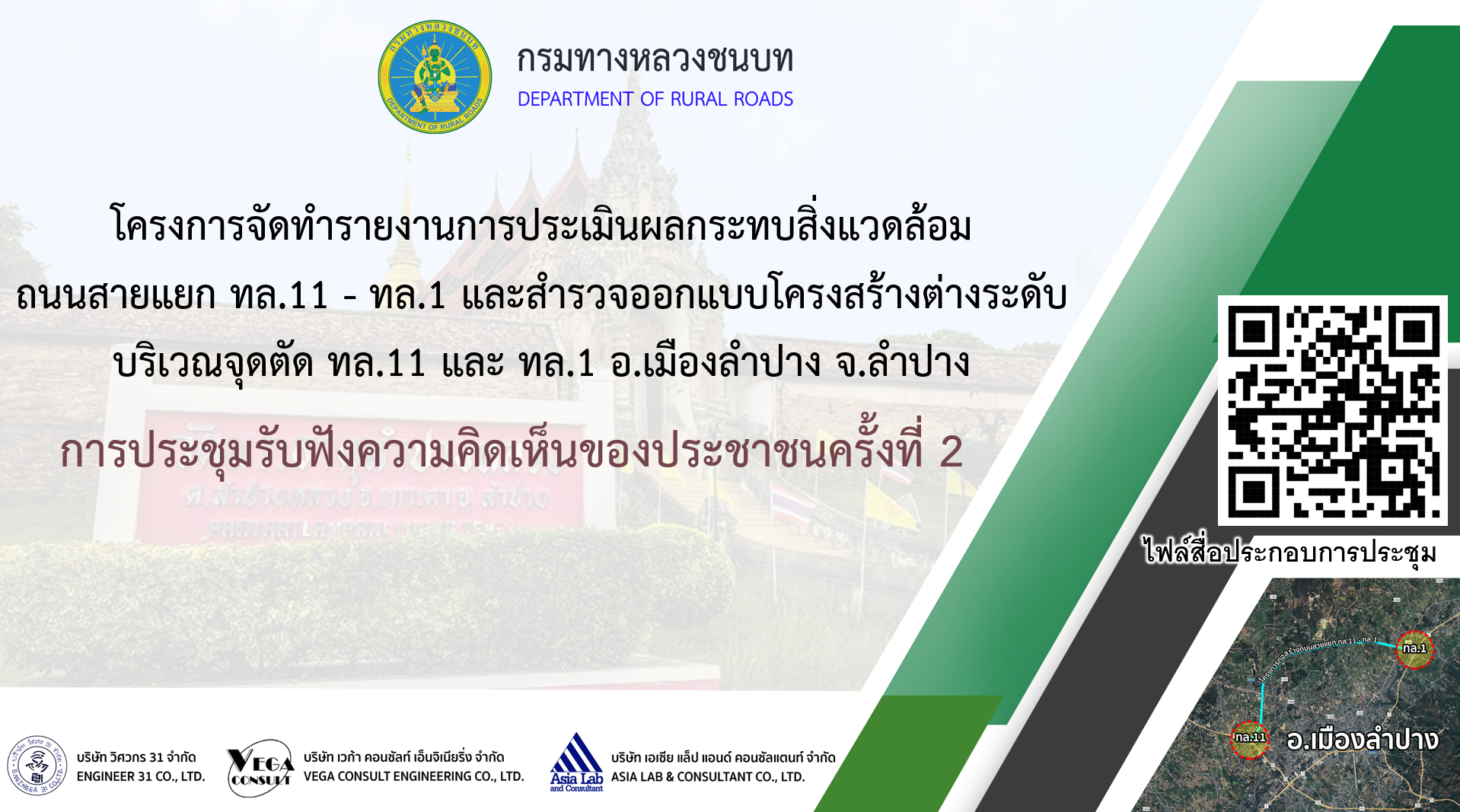 โครงการจัดทำรายงานการประเมินผลกระทบสิ่งแวดล้อม ถนนสายแยก ทล.11 - ทล.1 และสำรวจออกแบบโครงสร้างต่างระดับบริเวณจุดตัด ทล.11 และ ทล.1 อ.เมืองลำปาง จ.ลำปาง